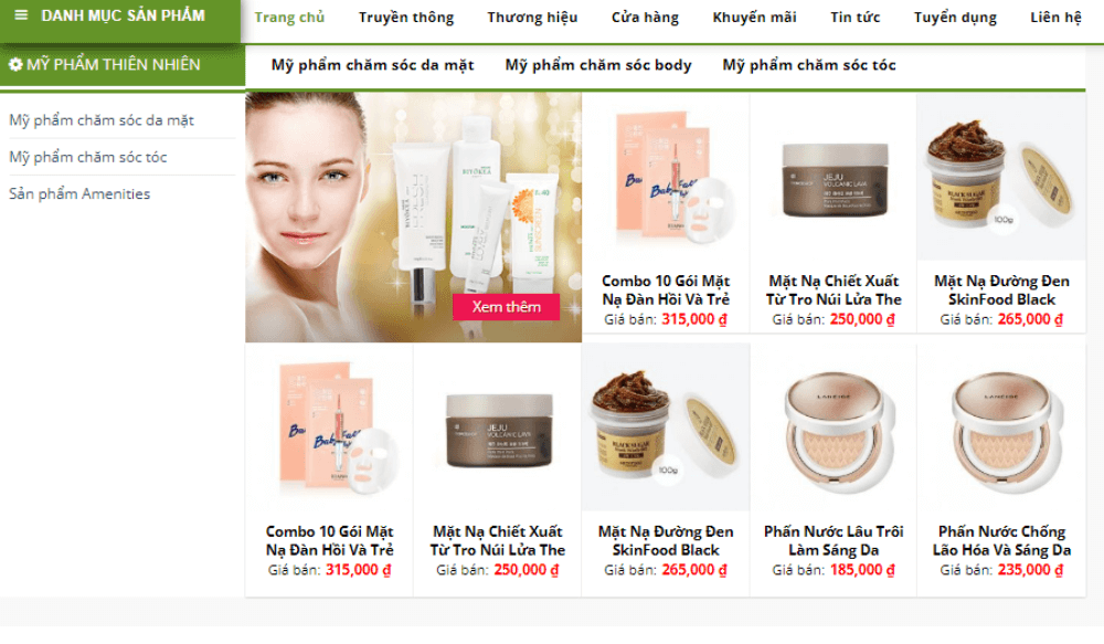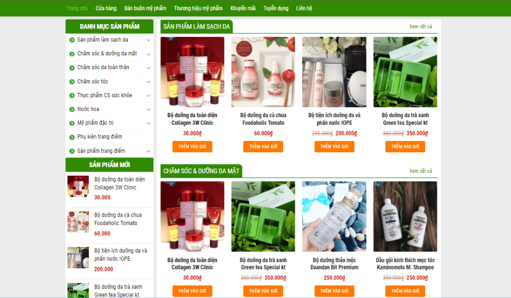 Danh mục sản phẩm gồm có: Kem dưỡng da & dầu, Tẩy tế bào chết, Trang điểm – Makeup, Son dưỡng môi, Chăm sóc cơ thể, Mỹ phẩm xách tay,…